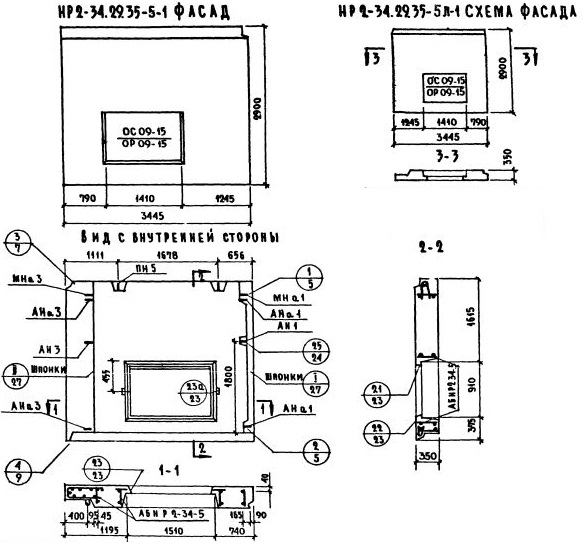 НР2-34.29.35-5л-1   Наружная стеновая панель рядовая по Серии 1.132-1.