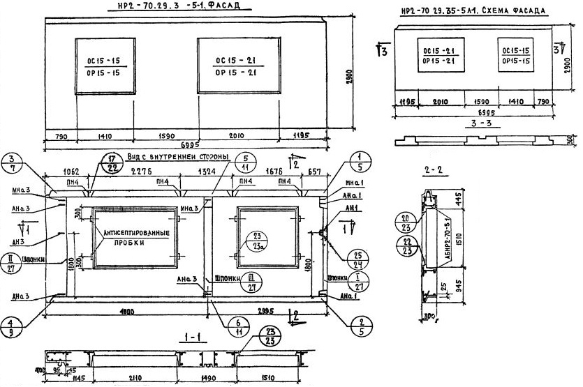 НР2-70.29.3-5л-1 Наружная стеновая панель рядовая по Серии 1.132-1.