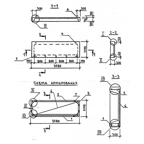 ПРЛ 36.12.3 Плита лоджий ребристая.  Панели перекрытия лоджий по серии 1.137.1-6.